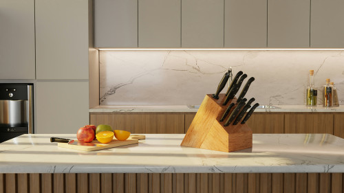 Ruoan ystävän keittiö on kovassa käytössä, joten materiaalien on kestettävä aikaa ja arkea. Komposiitti-, graniitti- tai ruostumattomasta teräksestä valmistetut työtasot ovat kestäviä ja helppohoitoisia. Massiivipuu tuo lämpöä ja luonnetta, mutta vaatii säännöllistä huoltoa.